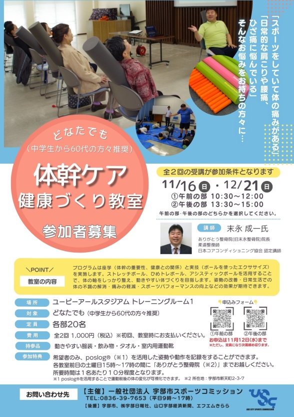 【参加者募集】体の不調・痛み解消、パフォーマンス向上へ!体幹ケア健康づくり教室(全2回)