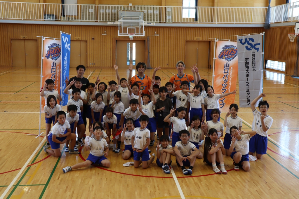 宇部市スポーツコミッションでは、子どもたちの体力向上と運動習慣の定着を目指し、「プロトップスポーツチーム(山口パッツファイブ)・宇部市・宇部市スポーツコミッション」の三者連携によるモデル事業を実施しました。
