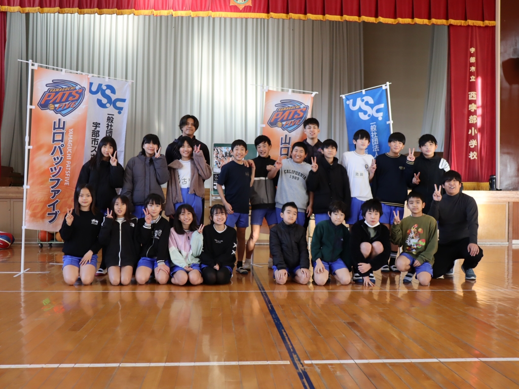 ・内容:ドリブルリレーやシュートバトルなど遊びを交えた基礎指導に加え、ダンクシュートや3ポイントシュートの実演を実施し、バスケットボールの迫力あるプレーを間近に観ることができ、プロアスリートをより身近に感じる時間となりました。講話では、プロバスケットボール選手になるまでのキャリアや夢をテーマに話し、その後の児童からの質問に派遣選手から一つひとつ丁寧に答えていただきました。
